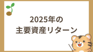 まずは、2025年の主要な資産の年次リターン(1年前と比べてどれくらい値上がり・値下がりしたか)を表にまとめました。