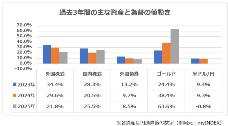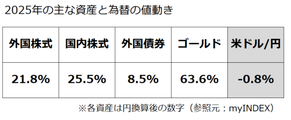 ただ、2025年は為替の変動が小さかったため、為替の影響は限定的で、「資産そのもののパフォーマンス」が結果に反映された一年だったと捉えることができます。